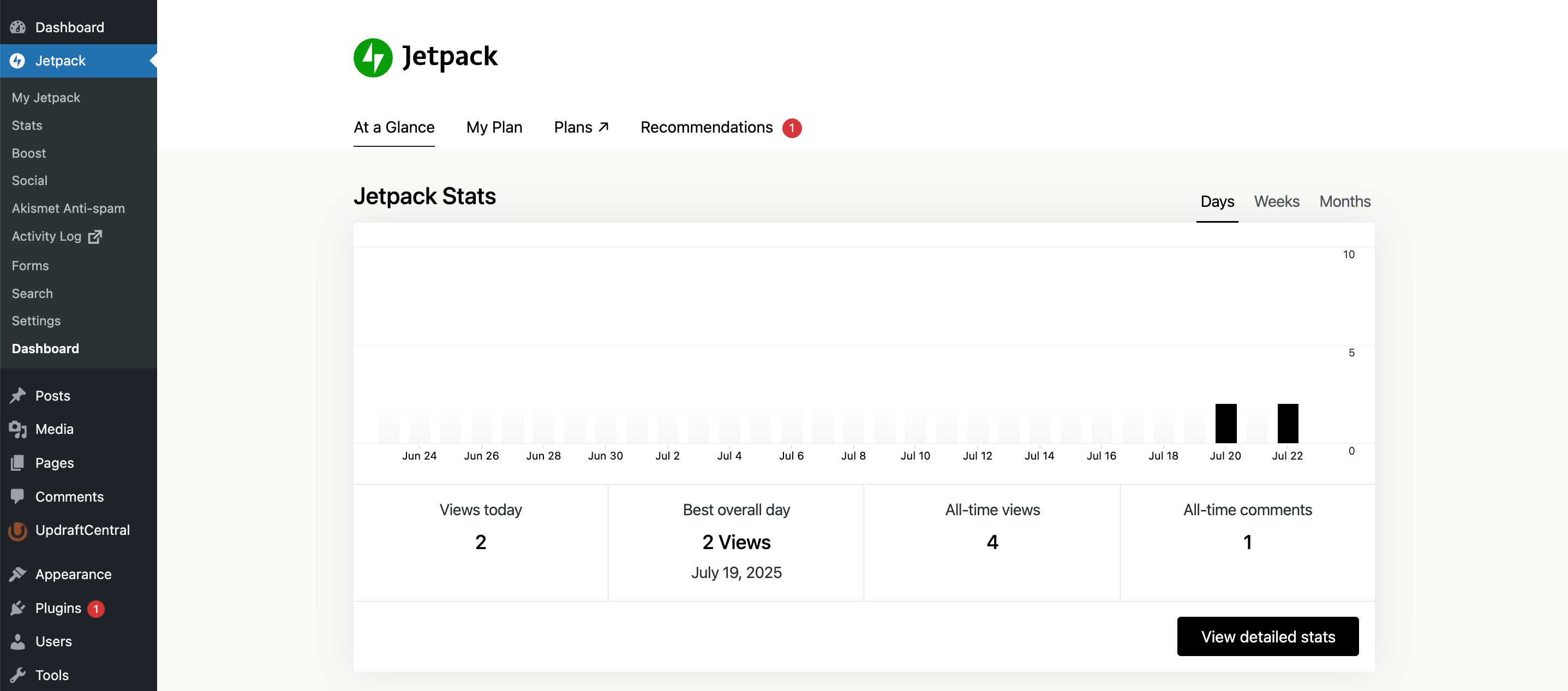 Jetpack has plenty of features, but it's not designed for WordPress maintenance. When it comes to keeping your sites running smoothly, WP Umbrella takes the lead.