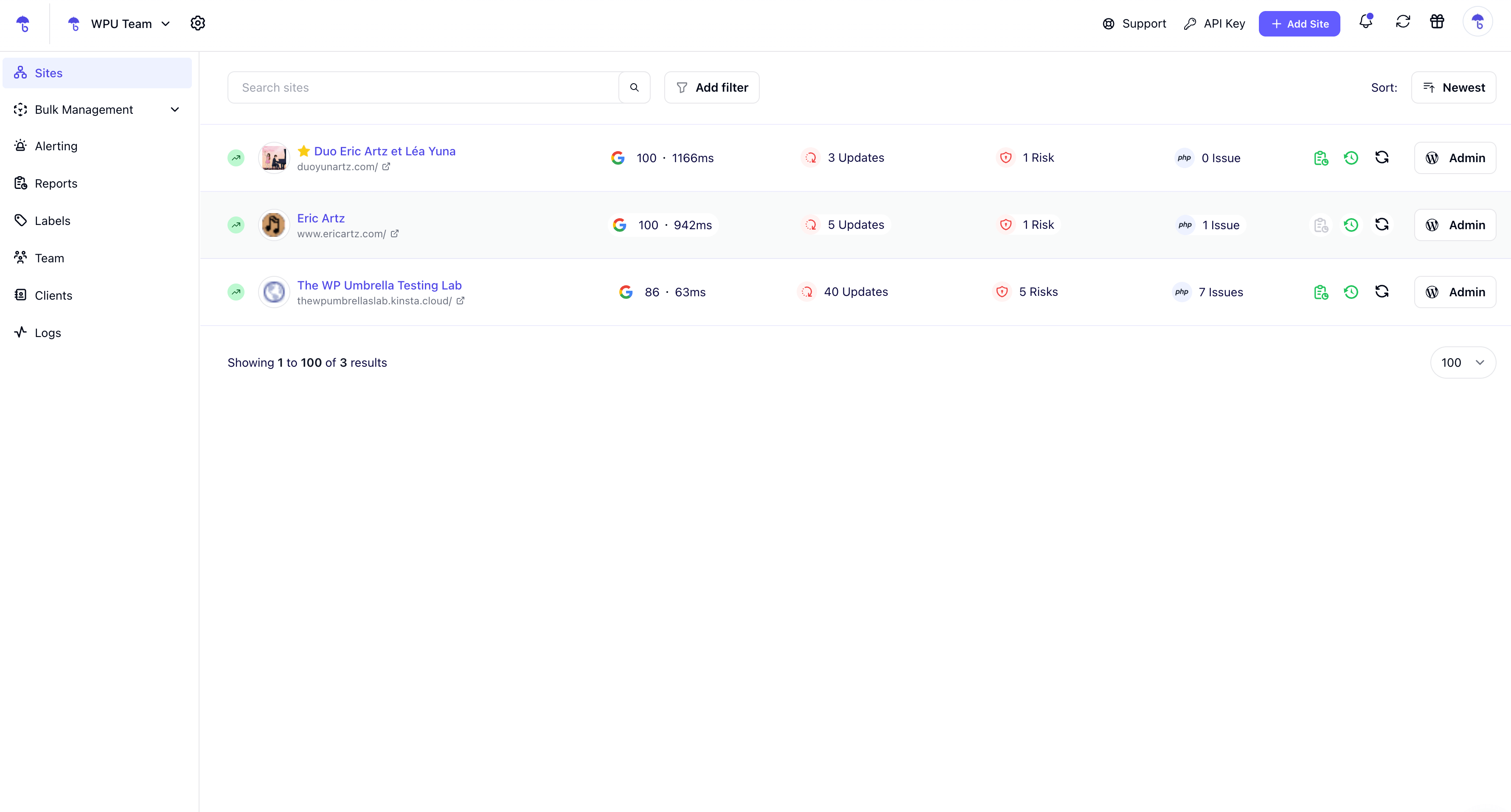 WP Umbrella is a reliable solution powered by a devoted team of WordPress experts. When you sign up, you also sign up with a partner committed to helping you with your WordPress sites.