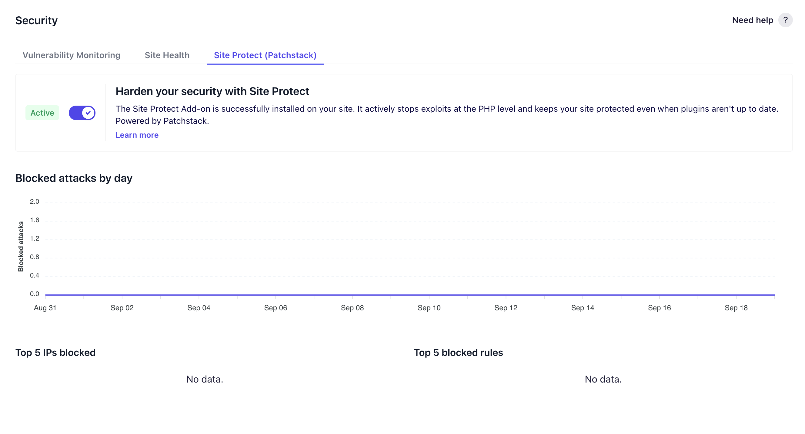 We take site security extremely seriously and encourage a proactive approach. For an added layer of safety, we have a full integration with Patchstack, helping you to detect and spot vulnerabilities before they become actual issues.