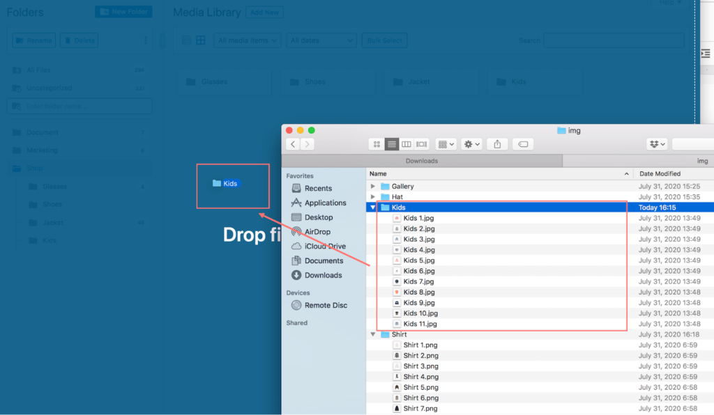 By drag and drop, all the folders will be uploaded including their files, keeping the same folder structure. Now you have the categorized product images in WordPress media library without the need to do it over again!