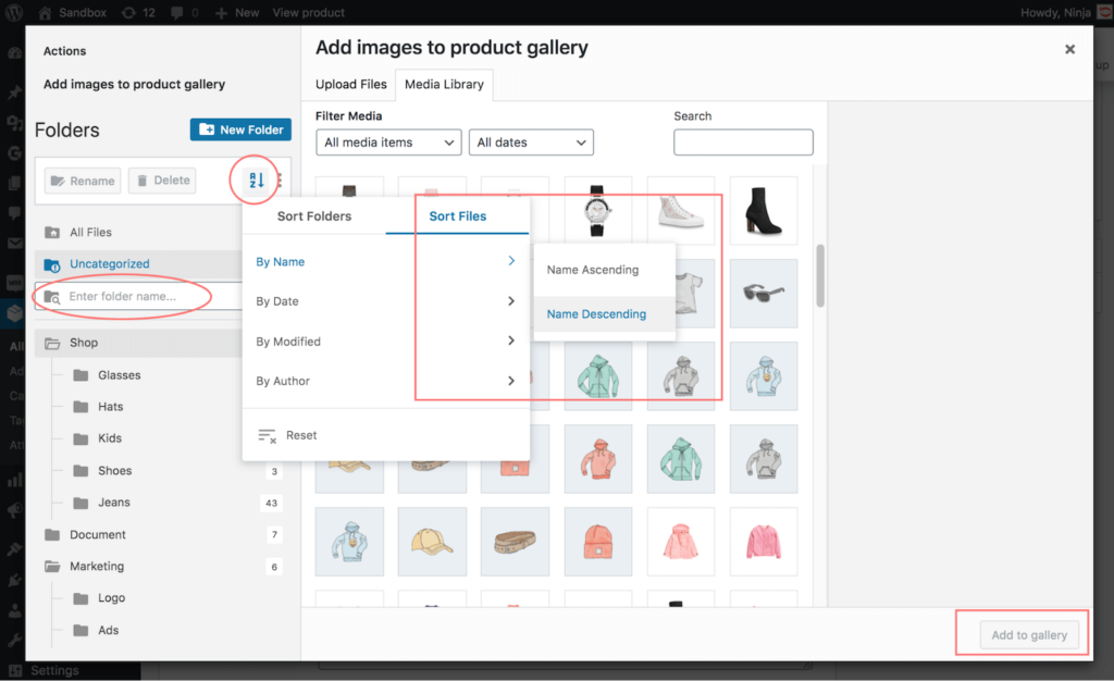 Pro tip: Advanced sorting is particularly useful when you have a wide range of product variations to upload to the product gallery. By giving decent attributes to those file names, you then can use file sort to locate the images quickly.