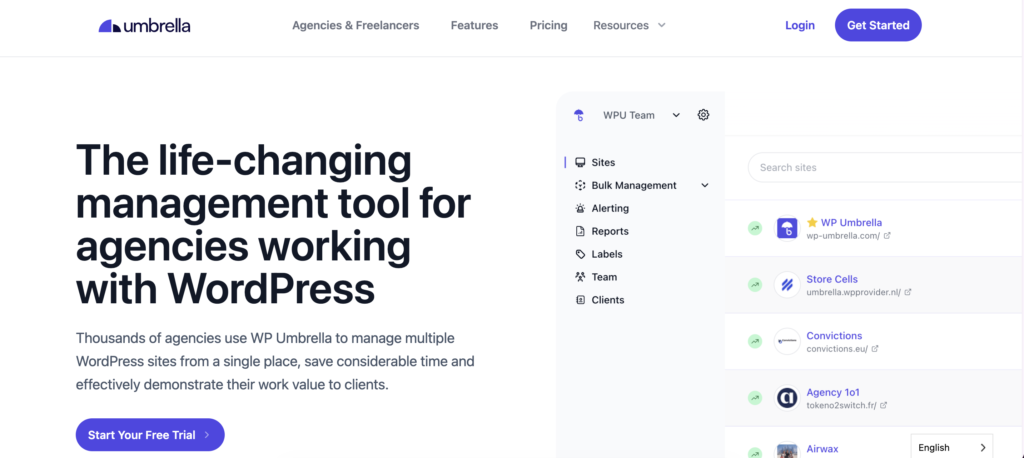 WP Umbrella is designed specifically for WordPress professionals who manage multiple sites. With this tool, you can monitor uptime in real-time, handle plugin and theme updates from one dashboard, track backup status, and send reports to your clients with zero manual effort.
